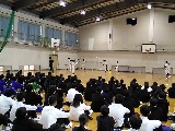 今日は体育館で新入生歓迎会と地区別集会がありました。