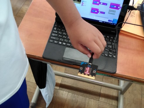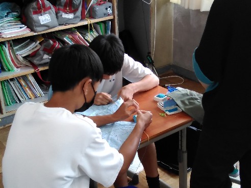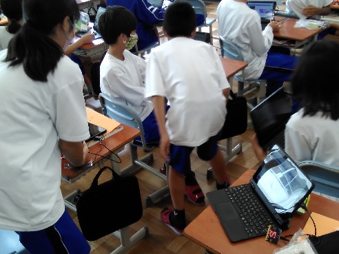 1年生技術は、タブレットを活用してプログラミングの学習を行っていました。今回作成したのはデジタル版のサイコロで、これを使って双六を楽しんでいました。プログラミングの段階で少し細工をして、大きい数字が出やすくしたりしていました。