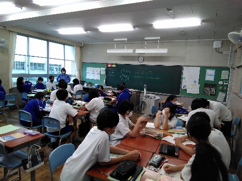 2年生家庭で取り組んでいる「刺し子」が仕上がってきています。互いに刺激しあって作品の質が高まっていきそうな気配を感じました。保健では適正体重の維持が話題になっていました。友だちの意識を知り、自己の習慣を見つめ直していました。