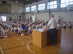にぎやかな教室とは違って、体育館での始業式では、きちんと話を聴く姿勢が見られました。しっかりとメリハリの利いた行動が始業式から見られて嬉しく思いました。