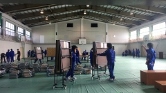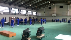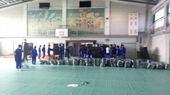 今日の土曜授業の時間を使って、2年生が卒業式の式場準備を