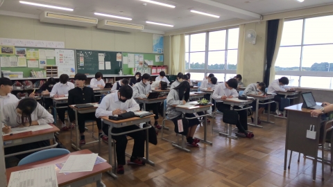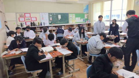 沢山の先生が授業を見ていて、いつもと違う雰囲気だったと思いますが、職場体験に向けてグループで積極的な意見交換ができていました。