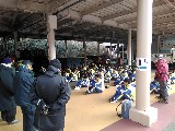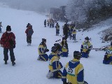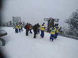ロープウェイ乗場でスキー実習の開講式を行い、2日間お世話になるインストラクターの方々に挨拶しました。ロープウェイは風のため、安全点検に少し時間を要しました。頂上駅に到着すると気温は氷点下4度。体感はそれ以下のようです。少し霧も出ていますが雪は十分あり、しっかりと実習出来そうです。厳しい自然の中での挑戦が始まりました。