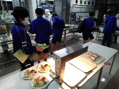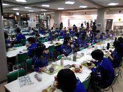交代で入浴をすませ、夕食の時間となりました。お昼のスキー場カレーも格別の味わいでしたが、温かなご飯とともにお味噌汁や生野菜も添えられたハンバーグ定食をみんなでおいしくいだきました。
