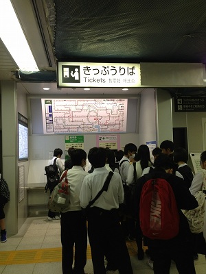 東京へ到着し、18:30まで東京都内分散学習を行います。まずは切符の買い方から一苦労です。
