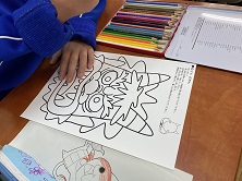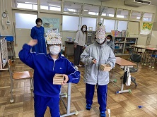 今日は節分ということで、鬼のお面づくりと豆まきをしました。自分の好きな色で鬼をぬり、手作りしたお面をつけました。豆まきの掛け声とともに、季節の変わり目を感じられました。