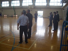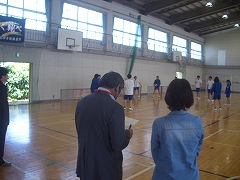 体育館ではバレーボールが行われていました。明るく元気な様子で取り組んでいましたね。