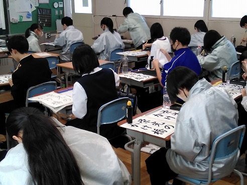 3年生国語は毛筆の書写に取り組んでいました。日常生活の中では、墨をすって筆で文字を書くという機会が少なくなっています。書くことを楽しむことを通じて、毛筆の字体のよさを新鮮な気持ちで見つめなおす機会になったのではないでしょうか。