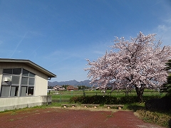 晴天に恵まれ桜も満開の中、生徒たちの元気な挨拶とともに