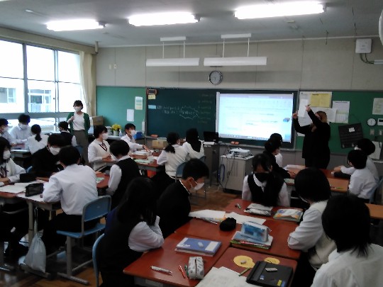 2年生国語では、「アイスプラネット」という作品を登場人物の心情や考え方が表れた語句に注意して読み、人物どうしの関係やそれぞれの人物像の読み取りを進めていました。授業を通じ、自分にはない読みや感じ方に触れ、感性が豊かになることを期待しています。