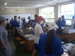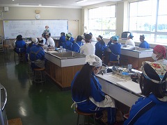 昨日は家庭科の授業の写真が撮れなかったので調理室にお邪魔しましたが、行ったタイミングが悪くて、最初の説明の場面と、ほぼ調理が終わった場面の写真になってしまいました…おいしそうな匂いが写真では伝えられないのが残念です。