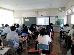 27日には「オンライン交流会」がありました。生徒会役員および各部活動キャプテンより、水沢小・小山田小の6年生に向けて、学校生活や部活動の紹介を行いました。中学校の環境やきまりなどについての質問に一つ一つ丁寧に答えました。