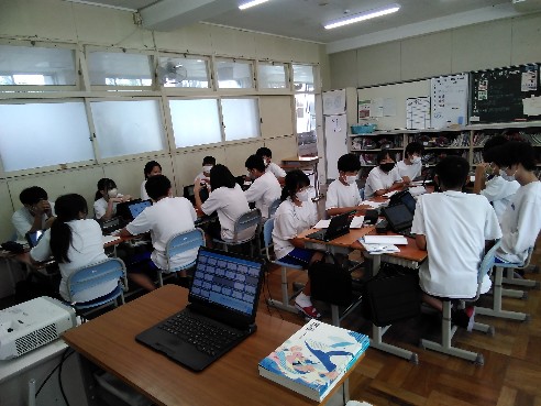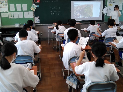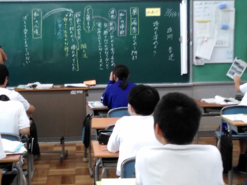 (国語)「鉛色の空の下、わびしい村々が、横たわっていた」という叙述から、「私」の心境は「決して楽しいものではない」ということを読み取っていきました。