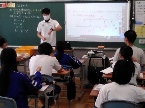 2において、X=2、Y=28のときの比例定数aの求め方を各自で考えた後、複数の考え方をまわりと話し合い、筋道立てて理解していきました。