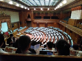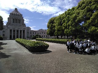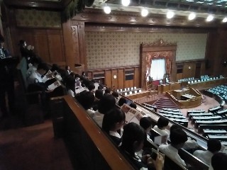 国会議事堂に来ました。参議院の議場の傍聴席で説明を聞いたあと、内部を見学しました。