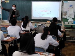 男女混成ダブルスに、熱く、楽しく、和やかに、取り組んでいました。 2年生理科では、「雲のでき方」について学習していました。気流や気温の変動が関係することから、昨日の帰宅時に鈴鹿の山々から吹き下ろしていた強い風のことを思い出して、身近な体験をもとに実感を伴いながら学んでいました。
