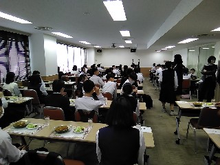 元気よくおかわりをしている人もいますね。みんながスムーズに行動してくれているので、時間にも余裕があって食事もゆっくりできています。