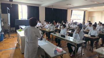 身近な薬の正しい使い方や、薬物乱用が心身に与える影響について分かりやすく教えていただきました。生徒たちは「自分の体を大切にすることの大切さ」を改めて感じていたようです。今回の学びを、これからの生活にも生かしていってほしいと思います。
