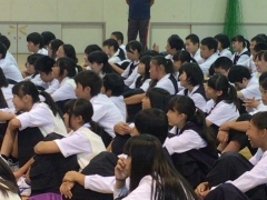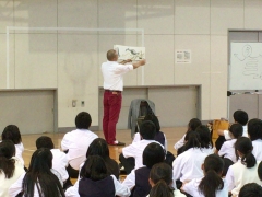 今日の土曜授業は2限目から体育館で人権講演会を行いました。