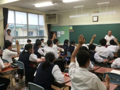 講演後は各教室も回っていただき、生徒たちと気さくに談笑するなど、