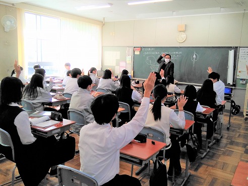 3年生理科は太陽の動きを学んでいます。その中で、「今日の南中高度は何度くらいだろう?」と問われ、多くの生徒の答えは60・70度に集中しました。あにはからんや答えは約30度。自分の感覚が見事にひっくり返された瞬間、思考が始まりました。