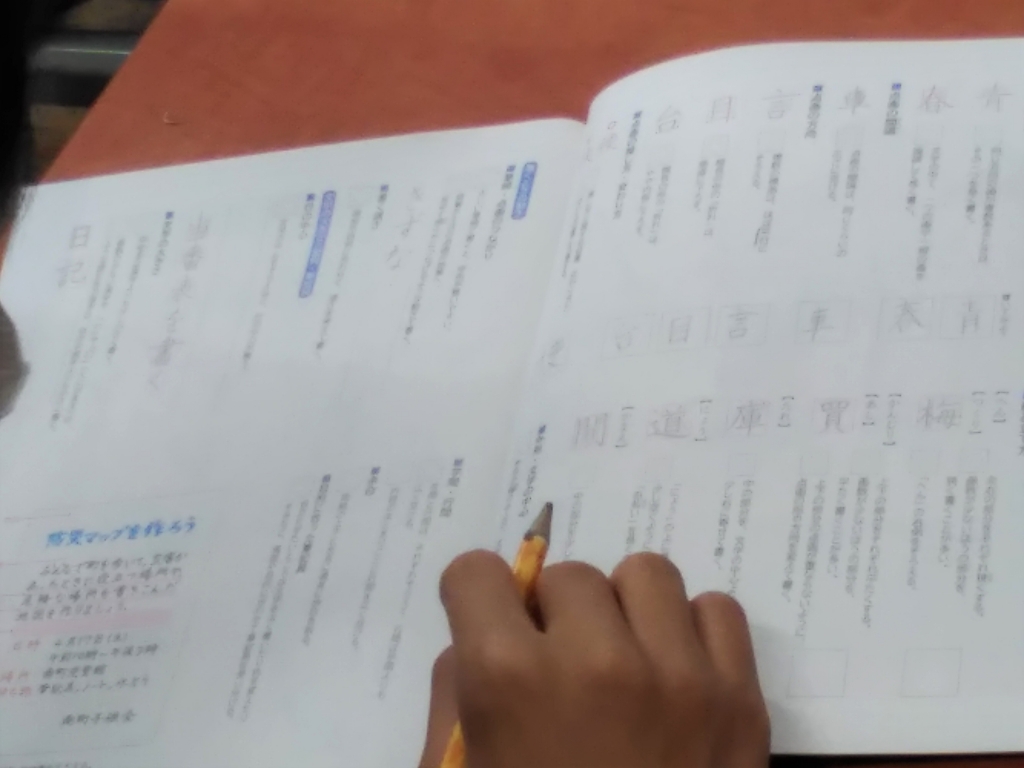 美しい文字とは?」としばらく立ち止まって考えました。その後、テキストを見ると、「漢字より平仮名を小さく書くこと」等のヒントがあり、実際に書いてみて納得していました。