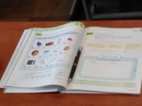 防災バッグに入れるものの優先順位をペアで考えて表現していました。防災教育の要素が詰まった授業でした。