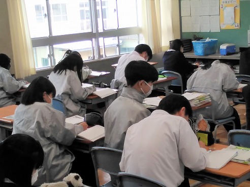 ⇩3年生理科 ムードはまさに受験勉強/図書室では前期選抜に向けて面接練習中