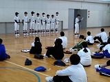 凛々しいユニフォーム姿の選手たちには、大会まであと一週間、最後の最後まで自分を極限まで追い込むような集中力ある練習に励むよう激励いたしました。これから入学してくる小学生たちにとってもまぶしい姿を見せてくれることを期待します。