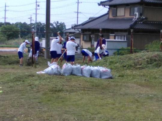 本日、PTA環境美化作業を実施させていただきましたところ、多数の保護者の皆様にご協力いただき、見違えるようにさっぱりと美しく整備いただきました。生徒たちも保護者の皆様に刈っていただいた草の収集作業を中心に、熱心に取り組んでくれました。貴重な休日に、また、大変暑い中、誠にありがとうございました。