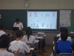 今日の午後の授業で、2年生は作成したヴィジョンボードについて発表をしていました。