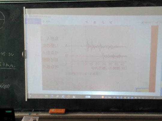 1年生理科 グラフをもとに地震のやってくる時間を計算する