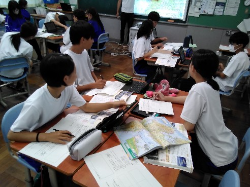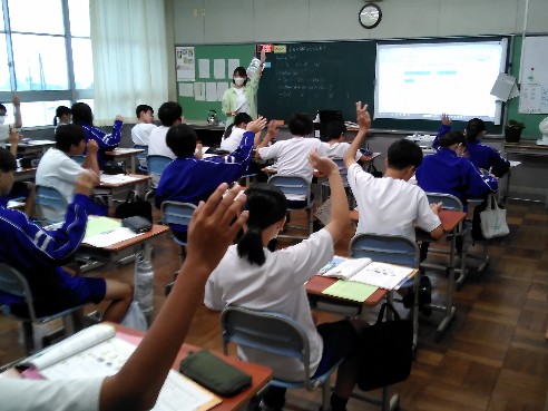 授業でみせる生徒の表情やしぐさににハッとすることがあります。今日の国語では、考え始めた瞬間が見えた気がしました。平和に関する教材だったので命や家族などかけがえのないものへの思いが沸きあがったのだろうと思います。