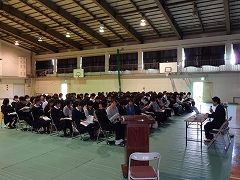 写真は3年生、進路説明会と修学旅行説明会の模様です。