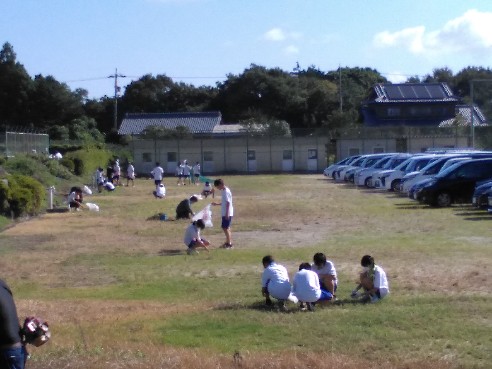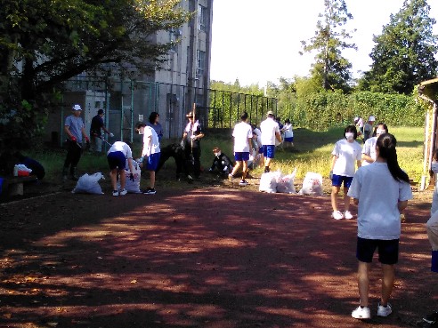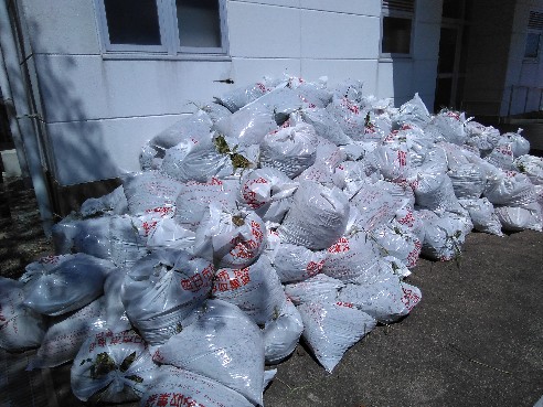 生徒たちも草集めに積極的に取り組み、あっという間に白いごみ袋の山が出来上がりました。