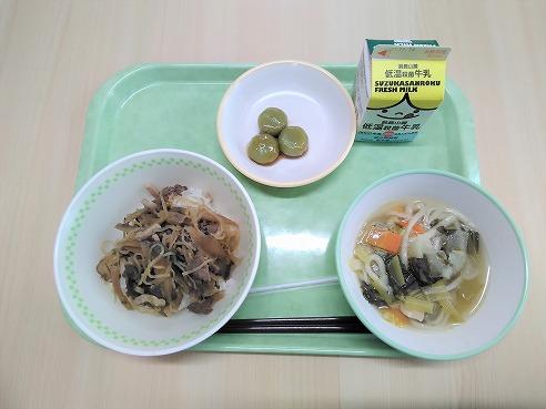 本日は「四日市ふるさと給食」でした。献立は、県の肉ごはんや大矢知のそうめん、そして、本校地元のお茶・牛乳と、まさしく郷土色いっぱいでした。給食を通じ、食文化や食への感謝・マナーについても正しい認識を育てたいと思います。