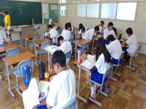 昨日に続き、夏の学習会でした。今日で4日目最終日です。勉強にわからないことはつきもの。わからないことに気づき、何がわからないのかをはっきりさせることが勉強の第一歩です。なぜこの答えになるのか?どう考えたらいいのか?こっちではなぜいけないのか?などと、きき(訊く+聴く)合うことが何より大切です。