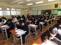 今日は3年生が全国学力・学習状況調査に取り組んでいます。