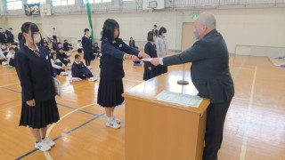 本日、修了式を実施しました。式に先立ち表彰伝達を行い、各分野で活躍した生徒たちの努力を称えました。