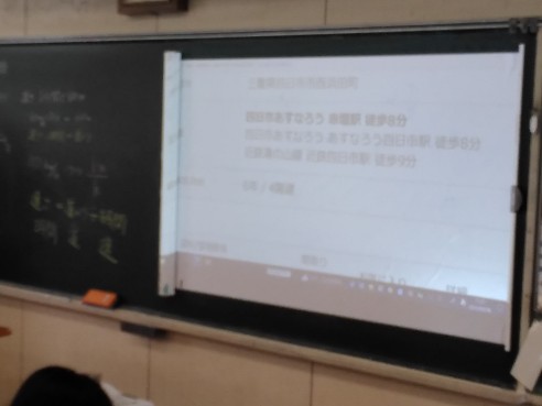「〇〇駅から徒歩8分」と書かれた不動産の広告をもとに考えていきました。数学が日常の生活と密接にかかわっていることを感じつつ、学びを進めました。