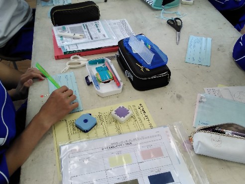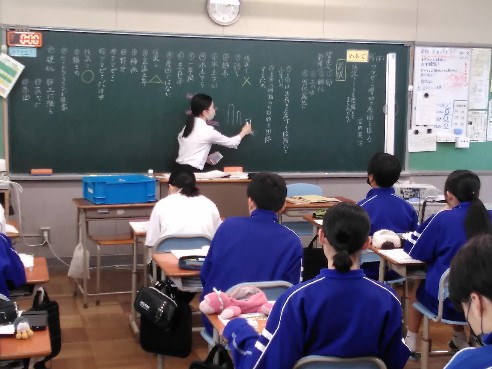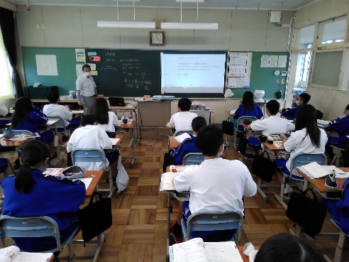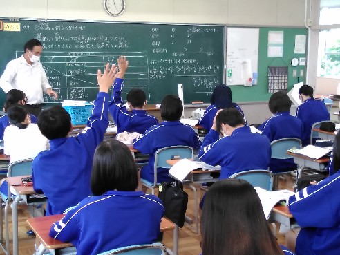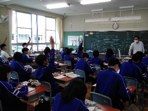 生徒たちが考えている場面では、そこに必ず「考える必然性」が準備されているようです。人間の思考というのは刺激がないと働きませんが、ちょっとした工夫で意欲が高まるものです。今日参観した授業では、こんな場面がありました。
