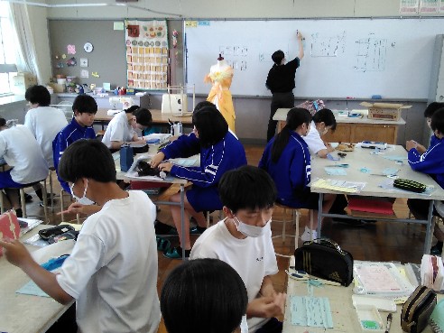 縫い方の説明を一方的に聞くだけではなく、型紙を使って一つ一つ実際に試しながら、グル-プで聴(訊)き合い、確かめ合いつつ、進められていきました。