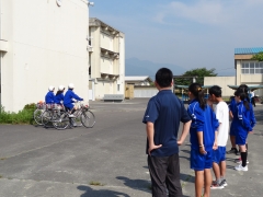 生活委員が学年別に日替わりで、自転車小屋手前