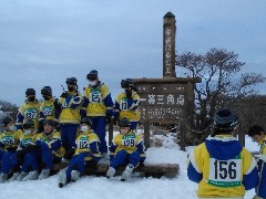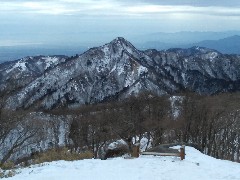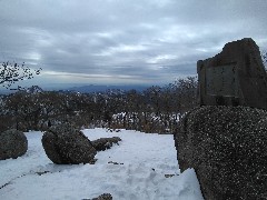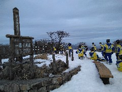 午後一番で山頂を訪れるグループもありました。三重と滋賀との県境や一等三角点を見つけて、盛り上がっていました。御在所から見る鎌ヶ岳の眺めはふだん目にするものとは大違いです。ここからしか味わえないわが故郷の秀峰の姿でした。(右下は、山口誓子句碑:「雪嶺の 大三角を 鎌という」)