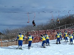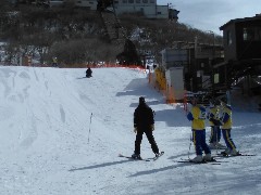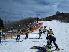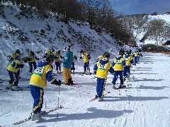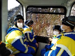 ロープウェイで御在所スキー場に到着し、本日のスキー実習午前の部がはじまりました。それぞれのインストラクターの先生から、スキーの基本的な技術のほか、けがをしないための心構えなど、大切なことをたくさん学んでいました。