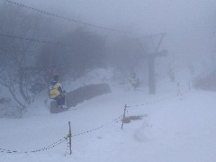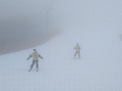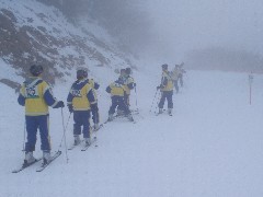 山の天気は変わりやすく、あっという間にあたりは真っ白な世界に包まれたりもします。上級者コースに挑戦しているグループもありますが、残念ながらうまく撮影できないぐらいです。生徒たちも自然の力を改めて感じたことと思います。