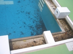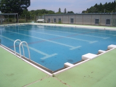 写真にあるように、水の中には落ち葉などが沈んでいる状態ですが、今週末から来週初めにかけてプール掃除を行い、きれいな水を張ります。