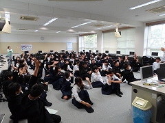 今日帰りの学活の時間を活用して、1年生はPC室で学年集会を