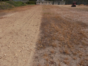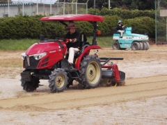 写真のように、専用重機で土を掘り起こして草を抜き、地面を固め直す作業でした。