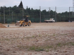 本日、運動場を整備する業者さんの手によって、荒れた運動場を見違えるほど整備していただきました。